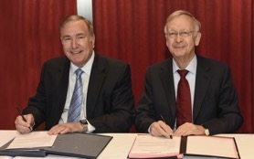 MIAMI, April 8, 2016 – There’s a new member of the Royal Caribbean family as the global cruise line officially took delivery of its 24th ship, Ovation of the Seas, in a ceremony held today in Bremerhaven, Germany. Royal Caribbean Cruises Ltd.’s Chairman and CEO Richard D. Fain received the new ship from Meyer Werft Yard’s Managing Partner Bernard Meyer at the official handover ceremony. Ovation of the Seas is the third Quantum-class ship built at Meyer Werft and together with her sister ships, Quantum of the Seas and Anthem of the Seas, features unprecedented first-at-sea experiences and amenities.